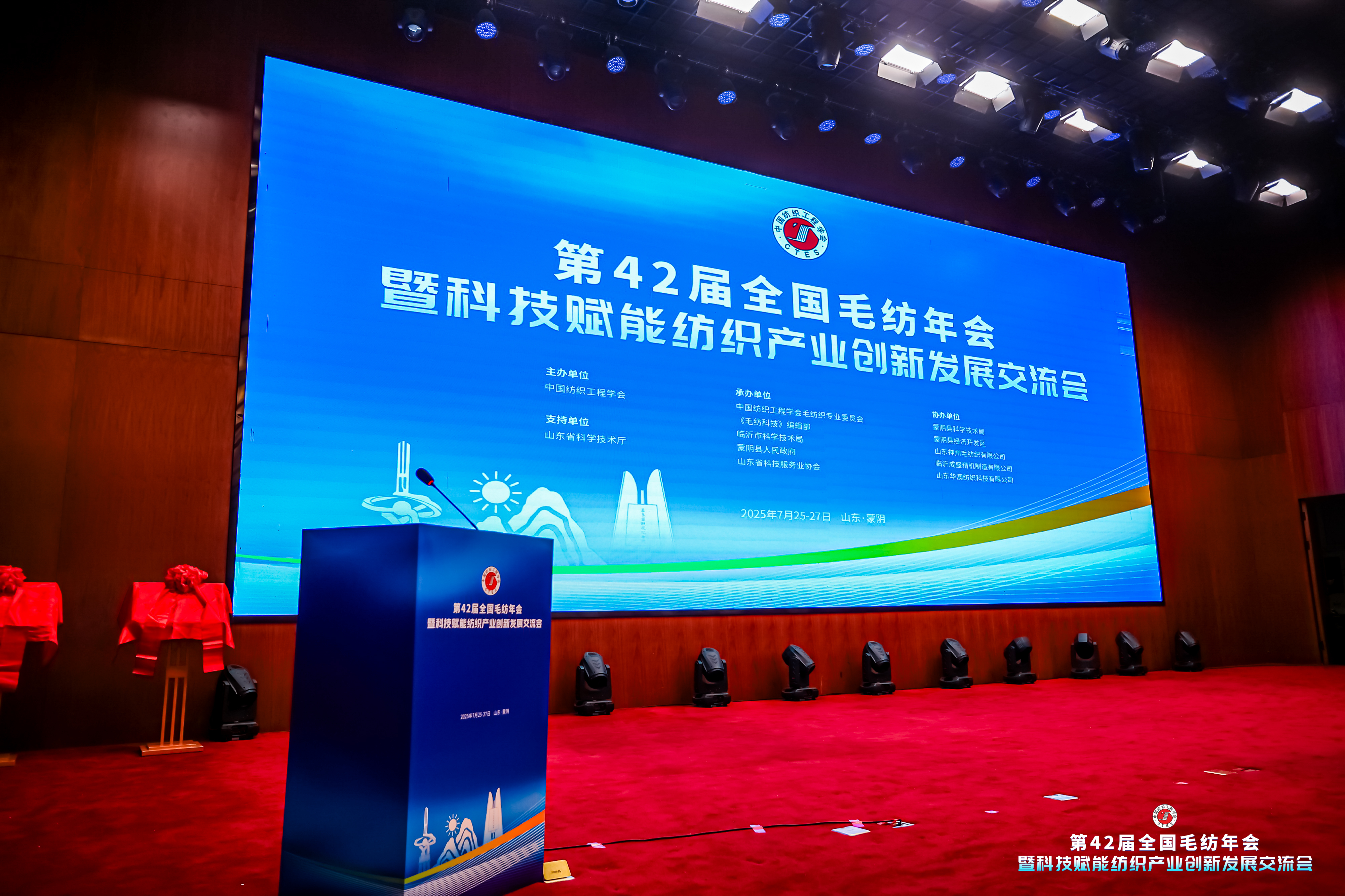 7月26日,第42届全国毛纺年会暨科技赋能纺织产业创新发展交流会在山东省蒙阴县盛大开幕。大会由中国纺织工程学会主办,中国纺织工程学会毛纺织专业委员会、《毛纺科技》编辑部、临沂市科学技术局、蒙阴县人民政府、山东省科技服务业协会承办,山东神州毛纺织有限公司、临沂成盛精机制造有限公司、山东华澳纺织科技有限公司协办。